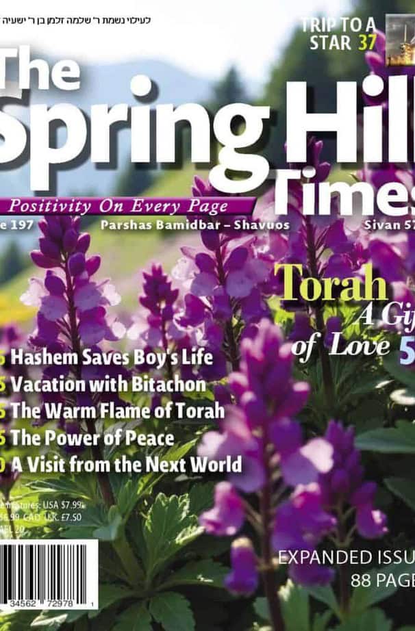 The Spring Hill Times is a newspaper focused on happy positive news, with a special focus on how wonderful Hashem is to us. The reader will also get a glimpse of the greatness of Hashem and the greatness of Klal Yisrael. The newspaper also puts a special emphasis on Bitachon and Hashgacha Pratis.