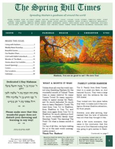 Click below to download this week’s issue of The Spring Hill Times. Inspired by ‘A Life with Bitachon’. The Spring Hill Times Issue 71