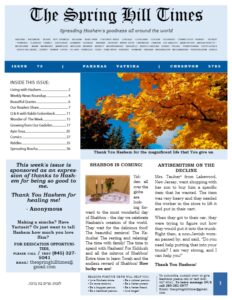 Click below to download this week’s issue of The Spring Hill Times. Inspired by ‘A Life with Bitachon’. The Spring Hill Times Issue 73 Vayeira 5783 Listen to the Powerful, Daily-Updated Shiurim that have inspired tens of thousands by Rabbi Golombeck on ‘A Life with Bitachon’. Eretz Yisroel 079-704-0068 Lakewood 732-719-3898 Monsey 845-470-5577 Five Boroughs 929-470-5577 England 03-303-502-368 Australia (3) 99-997-300 Canada 647-498-7700 Read more: The Spring Hill Times Issue 74 Chaya Sarah 5783