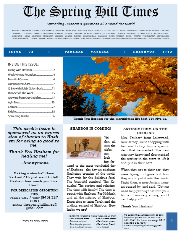 The Spring Hill Times Issue 73 Vayeira 5783