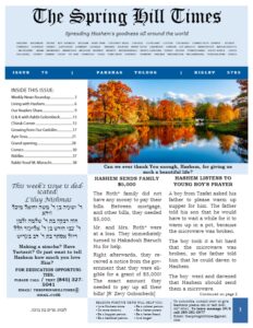 Click below to download this week’s issue of The Spring Hill Times. Inspired by ‘A Life with Bitachon’. The Spring Hill Times Issue 75 Toldos Listen to the Powerful, Daily-Updated Shiurim that have inspired tens of thousands by Rabbi Golombeck on ‘A Life with Bitachon’. Eretz Yisroel 079-704-0068 Lakewood 732-719-3898 Monsey 845-470-5577 Five Boroughs 929-470-5577 England 03-303-502-368 Australia (3) 99-997-300 Canada 647-498-7700 Read more: The Spring Hill Times Issue 76 Vayeitzei