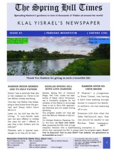 Click below to download this week’s issue of The Spring Hill Times. Inspired by ‘A Life with Bitachon’. The Spring Hill Times Issue 87