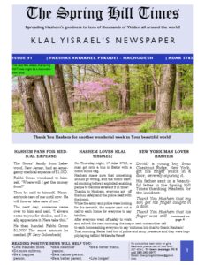 The Spring Hill Times Issue 91 Vaykhel Pekudei 5783