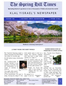 Click below to download this week’s issue of The Spring Hill Times. Inspired by ‘A Life with Bitachon’. The Spring Hill Times Issue 96