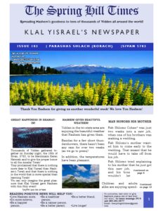 Click below to download this week’s issue of The Spring Hill Times. Inspired by ‘A Life with Bitachon‘. The Spring Hill Times Issue 103 Shlach 5783 Listen to the Powerful, Daily-Updated Shiurim that have inspired tens of thousands by R’ Zevy Golombeck on ‘A Life with Bitachon’. Eretz Yisroel 079-704-0068 Lakewood 732-719-3898 Monsey 845-470-5577 Five Boroughs 929-470-5577 England 03-303-502-368 Australia (3) 99-997-300 Canada 647-498-7700 Read more: The Spring Hill Times Issue 104 Korach 5783