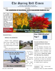 Click below to download this week’s issue of The Spring Hill Times. Inspired by ‘A Life with Bitachon’. The Spring Hill Times Issue 120 Lech Licha 5784 Listen to the Powerful, Daily-Updated Shiurim that have inspired tens of thousands by Rabbi Golombeck on ‘A Life with Bitachon‘. Eretz Yisroel 079-704-0068 Lakewood 732-719-3898 Monsey 845-470-5577 Five Boroughs 929-470-5577 England 03-303-502-368 Australia (3) 99-997-300 Canada 647-498-7700 Read more: The Spring Hill Times Issue 121 Vayeira 5784