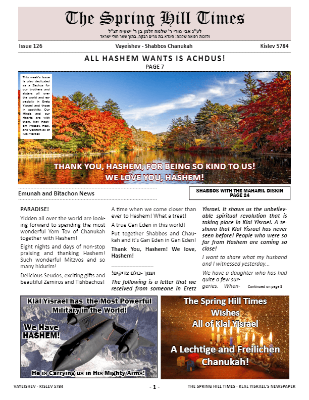 The Spring Hill Times Issue 126 Vayeishev Shabbos Chanukah 5784
