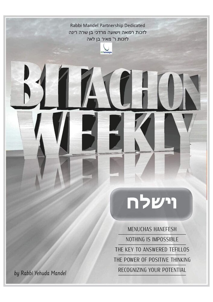 Bitachon Weekly – Menuchas Hanefesh, Nothing is Impossible, The Key To Answered Tefillos, The Power of Positive Thinking, Recognizing Your Potential by the world-renowned Rabbi Yehuda Mandel.