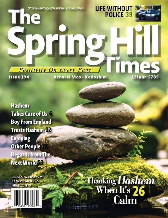 $2.50The Spring Hill Times is a newspaper focused on happy positive news, with a special focus on how wonderful Hashem is to us. The reader will also get a glimpse of the greatness of Hashem and the greatness of Klal Yisrael. The newspaper also puts a special emphasis on Bitachon and Hashgacha Pratis.