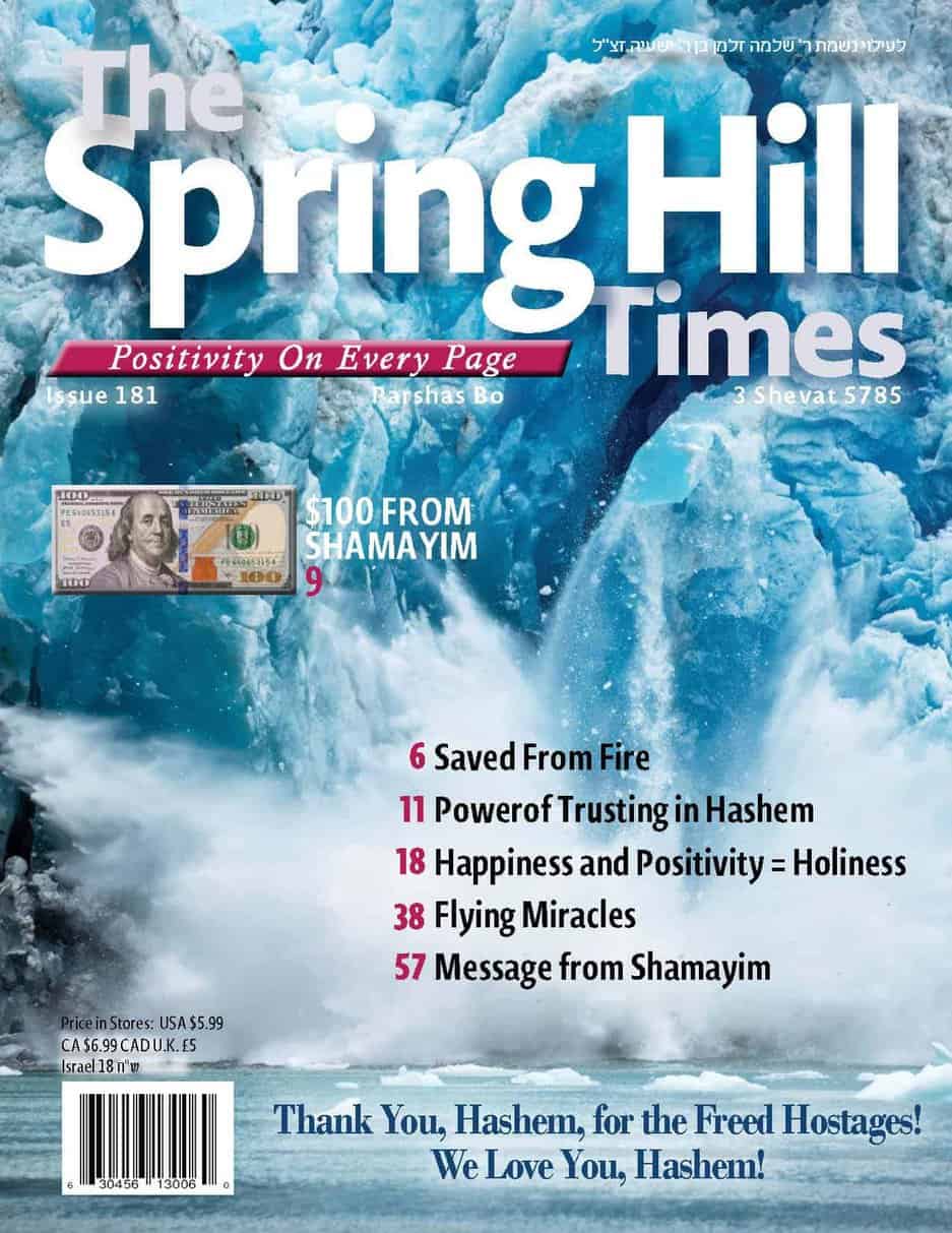The Spring Hill Times is a newspaper focused on happy positive news, with a special focus on how wonderful Hashem is to us. The reader will also get a glimpse of the greatness of Hashem and the greatness of Klal Yisrael. The newspaper also puts a special emphasis on Bitachon and Hashgacha Pratis. Inspired by A Life with Bitachon.