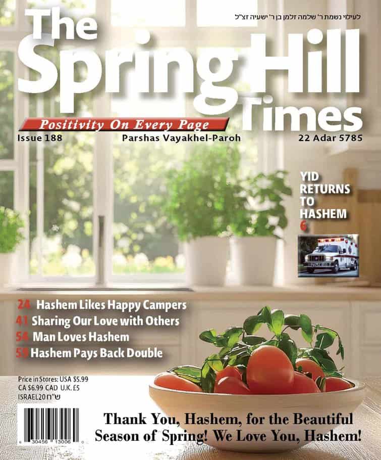The Spring Hill Times is a newspaper focused on happy positive news, with a special focus on how wonderful Hashem is to us. The reader will also get a glimpse of the greatness of Hashem and the greatness of Klal Yisrael. The newspaper also puts a special emphasis on Bitachon and Hashgacha Pratis.