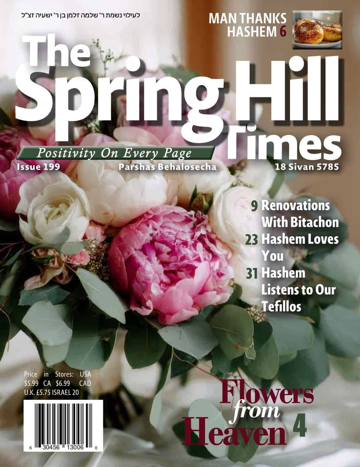 The Spring Hill Times is a newspaper focused on happy positive news, with a special focus on how wonderful Hashem is to us. The reader will also get a glimpse of the greatness of Hashem and the greatness of Klal Yisrael. The newspaper also puts a special emphasis on Bitachon and Hashgacha Pratis.