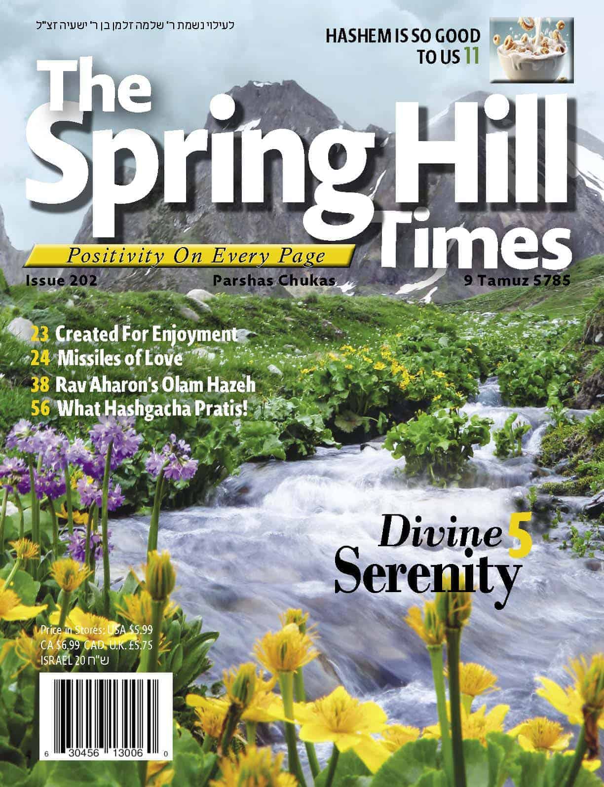 The Spring Hill Times is a newspaper focused on happy positive news, with a special focus on how wonderful Hashem is to us. The reader will also get a glimpse of the greatness of Hashem and the greatness of Klal Yisrael. The newspaper also puts a special emphasis on Bitachon and Hashgacha Pratis.