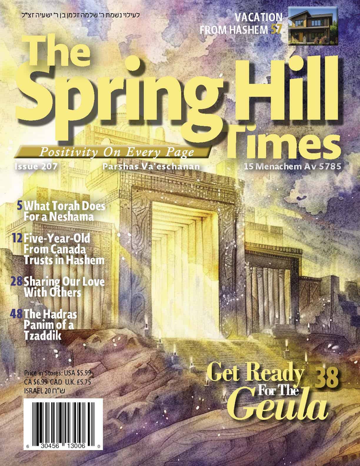 The Spring Hill Times is a newspaper focused on happy positive news, with a special focus on how wonderful Hashem is to us. The reader will also get a glimpse of the greatness of Hashem and the greatness of Klal Yisrael. The newspaper also puts a special emphasis on Bitachon and Hashgacha Pratis.