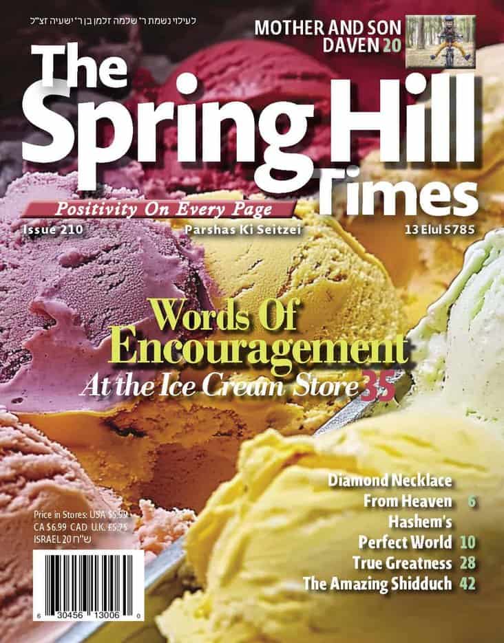 The Spring Hill Times is a newspaper focused on happy positive news, with a special focus on how wonderful Hashem is to us. The reader will also get a glimpse of the greatness of Hashem and the greatness of Klal Yisrael. The newspaper also puts a special emphasis on Bitachon and Hashgacha Pratis.