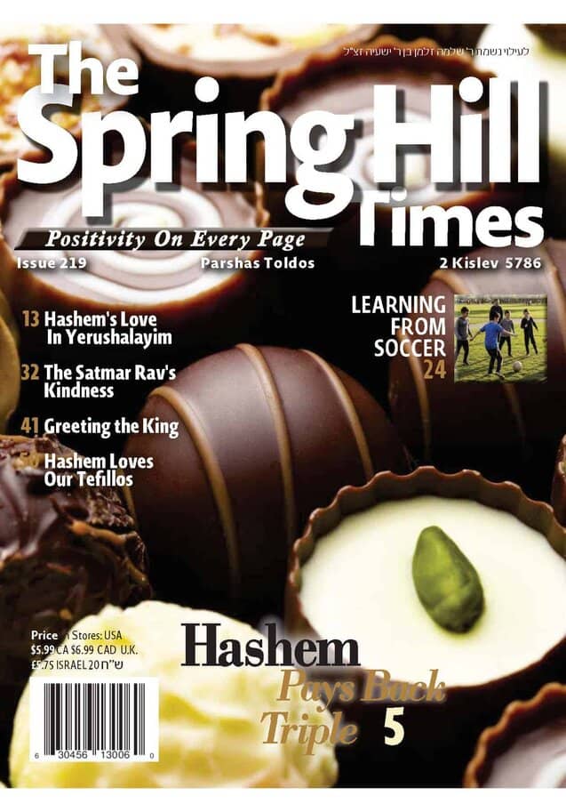 The Spring Hill Times is a newspaper focused on happy positive news, with a special focus on how wonderful Hashem is to us. The reader will also get a glimpse of the greatness of Hashem and the greatness of Klal Yisrael. The newspaper also puts a special emphasis on Bitachon and Hashgacha Pratis.