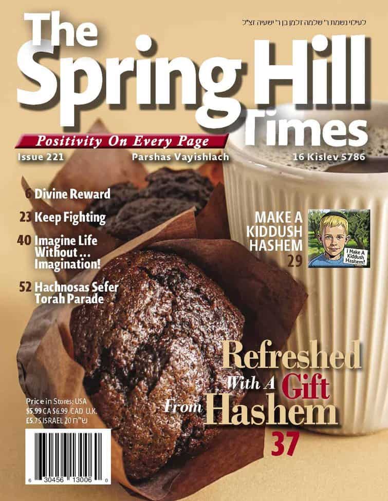 The Spring Hill Times is a newspaper focused on happy positive news, with a special focus on how wonderful Hashem is to us. The reader will also get a glimpse of the greatness of Hashem and the greatness of Klal Yisrael. The newspaper also puts a special emphasis on Bitachon and Hashgacha Pratis.