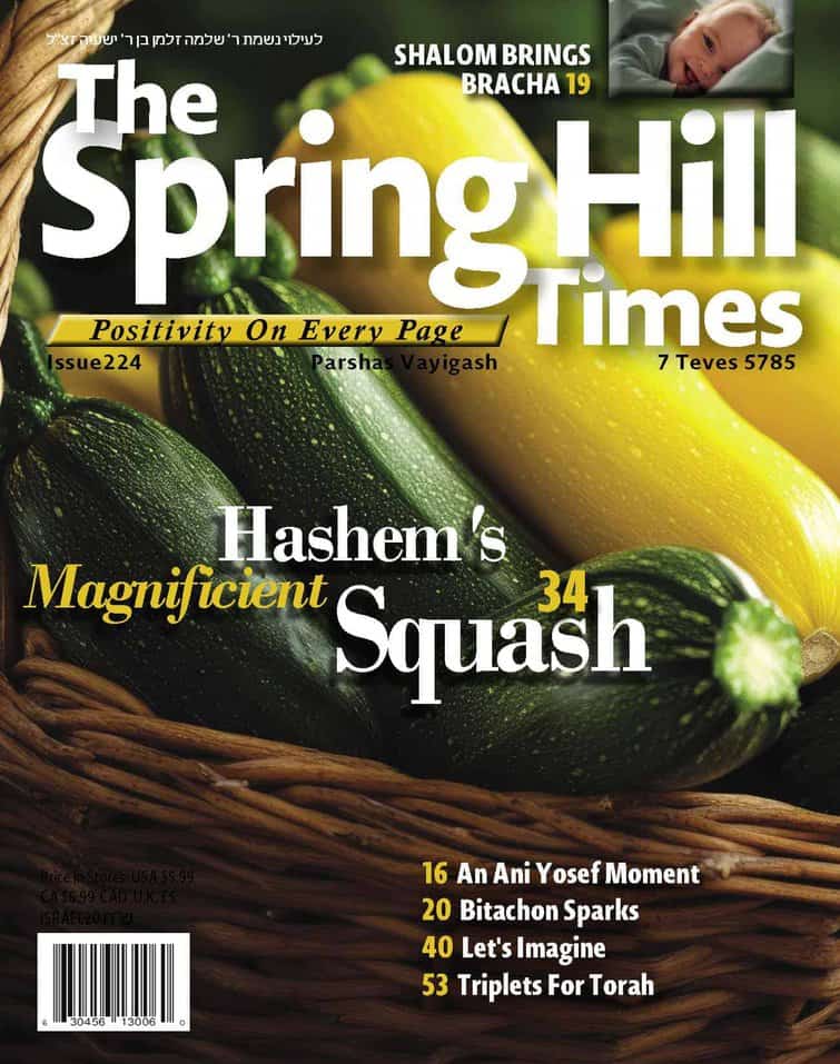 The Spring Hill Times is a newspaper focused on happy positive news, with a special focus on how wonderful Hashem is to us. The reader will also get a glimpse of the greatness of Hashem and the greatness of Klal Yisrael. The newspaper also puts a special emphasis on Bitachon and Hashgacha Pratis.