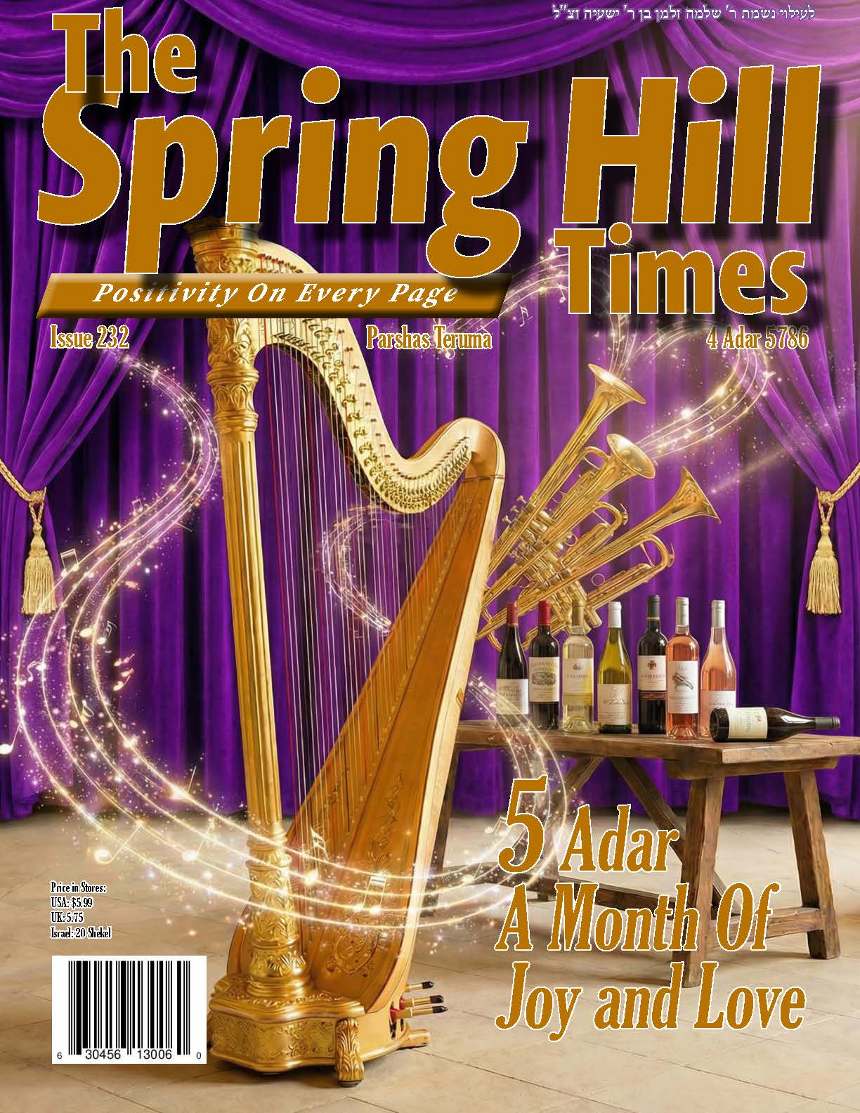The Spring Hill Times is a newspaper focused on happy positive news, with a special focus on how wonderful Hashem is to us. The reader will also get a glimpse of the greatness of Hashem and the greatness of Klal Yisrael. The newspaper also puts a special emphasis on Bitachon and Hashgacha Pratis.