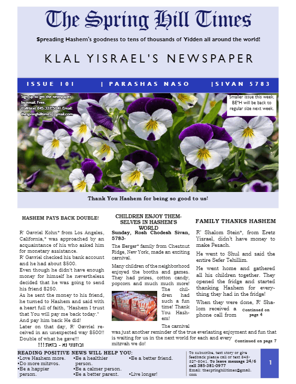Click below to download this week’s issue of The Spring Hill Times. Inspired by ‘A Life with Bitachon’.
