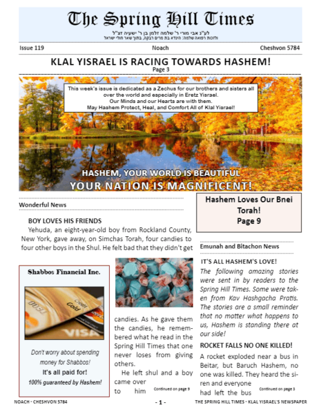 Click below to download this week’s issue of The Spring Hill Times. Inspired by ‘A Life with Bitachon’.