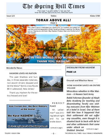 The Spring Hill Times Issue 123 Parshas Toldos 5784