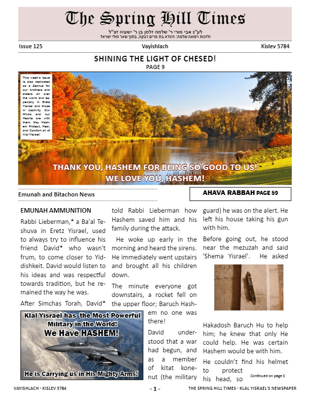 The Spring Hill Times Issue 125 Vayishlach 5784