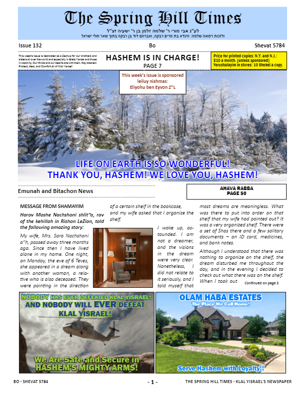 Click below to download this week’s issue of The Spring Hill Times. Inspired by ‘A Life with Bitachon’.