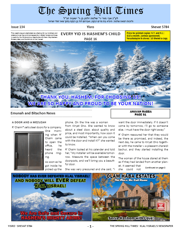 Click below to download this week’s issue of The Spring Hill Times. Inspired by ‘A Life with Bitachon’.