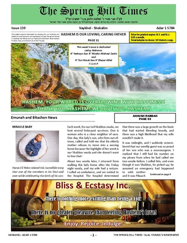 Read more: The Spring Hill Times Issue 140 Pekudei 5784