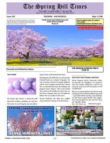 The Spring Hill Times Issue 143 Shemini Hachodesh 5784
