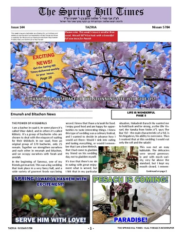 Read more: The Spring Hill Times Issue 145 Pesach 5784