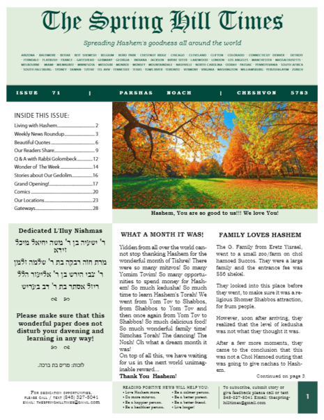 Click below to download this week’s issue of The Spring Hill Times. Inspired by ‘A Life with Bitachon’.