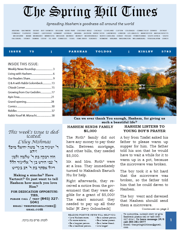 Click below to download this week’s issue of The Spring Hill Times. Inspired by ‘A Life with Bitachon’.