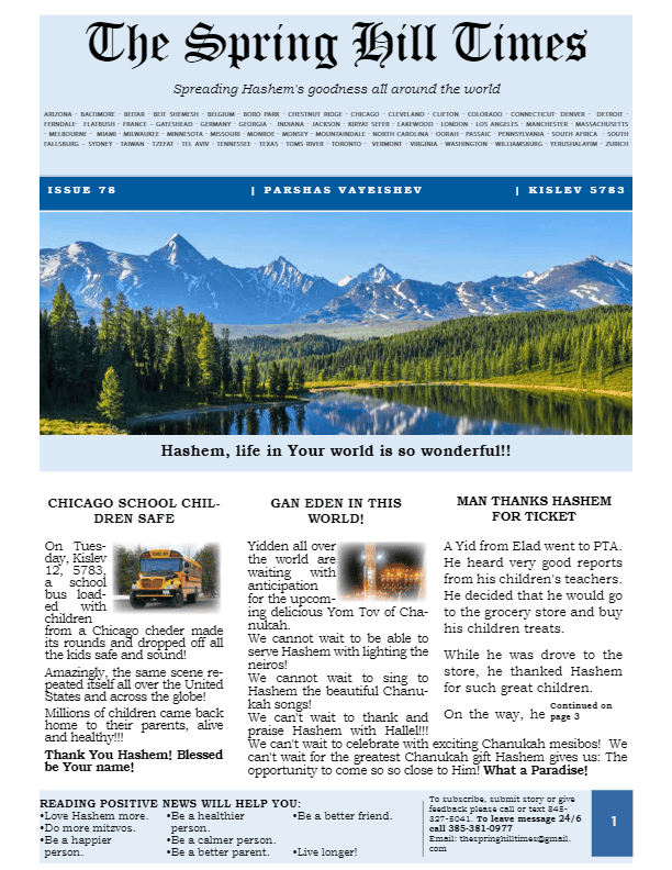 Click below to download this week’s issue of The Spring Hill Times. Inspired by ‘A Life with Bitachon’.