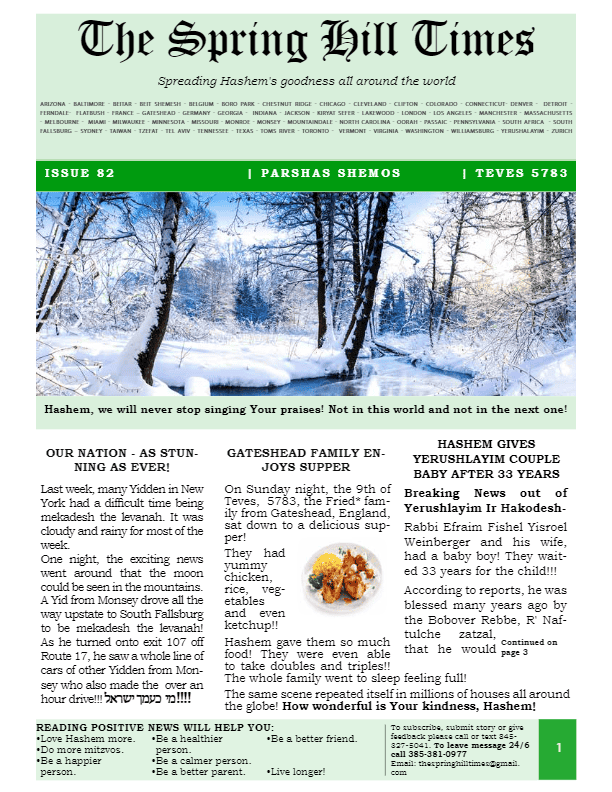 Click below to download this week’s issue of The Spring Hill Times. Inspired by ‘A Life with Bitachon’.