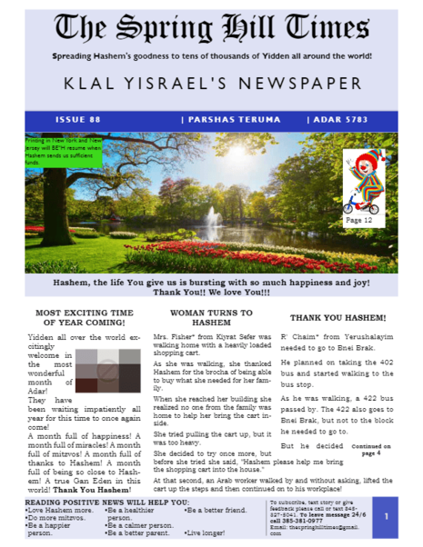 Click below to download this week’s issue of The Spring Hill Times. Inspired by ‘A Life with Bitachon’.